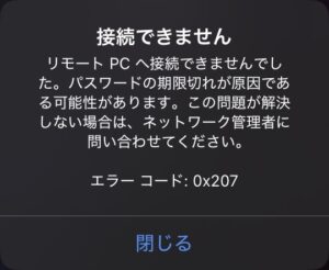 Mac版 Microsoft Remote Desktop を使って Ubuntu 24 (Remote Login有効化済) に接続する際、接続が失敗するエラー 0x207 が発生する問題があります。