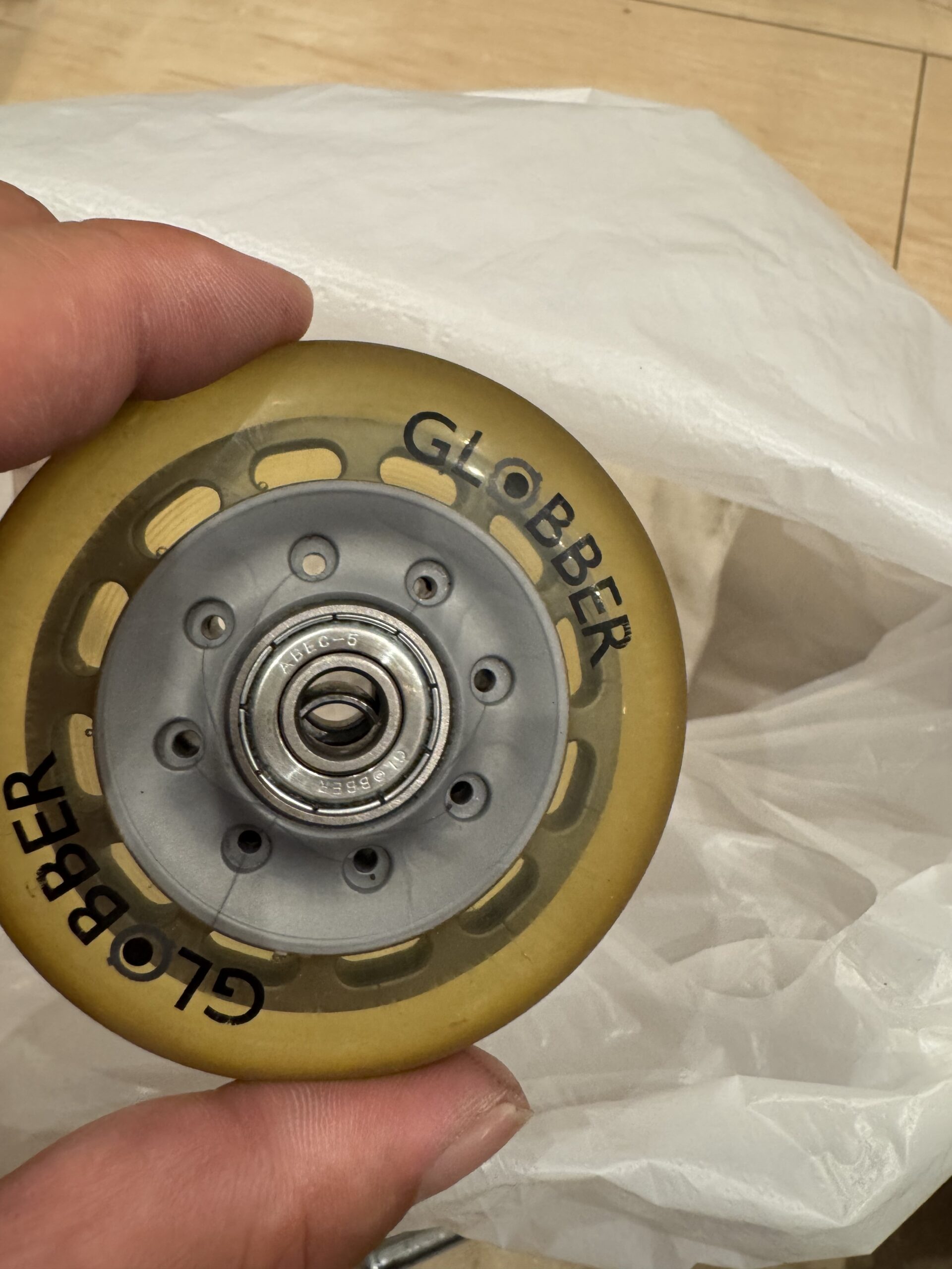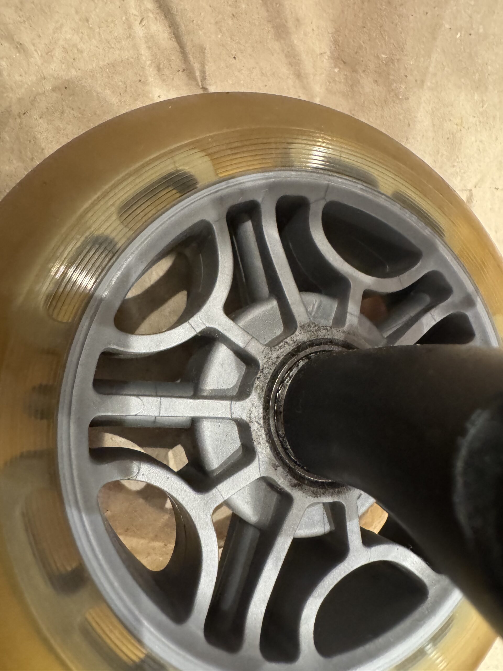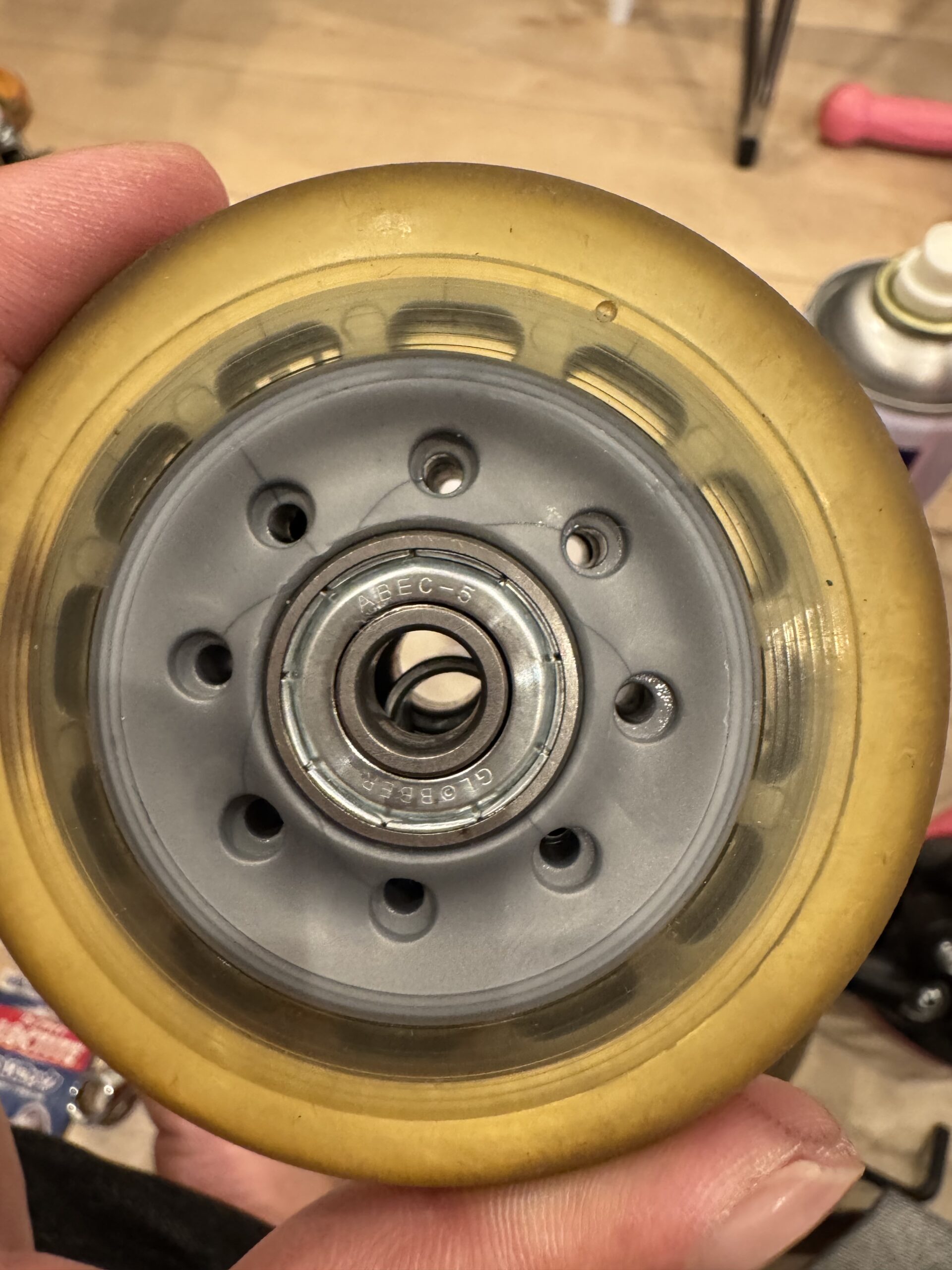 せっかく交換するならタイヤごと交換してもいいですし、スケートボード用のベアリングを入れてもいぃかもしれないですね。
