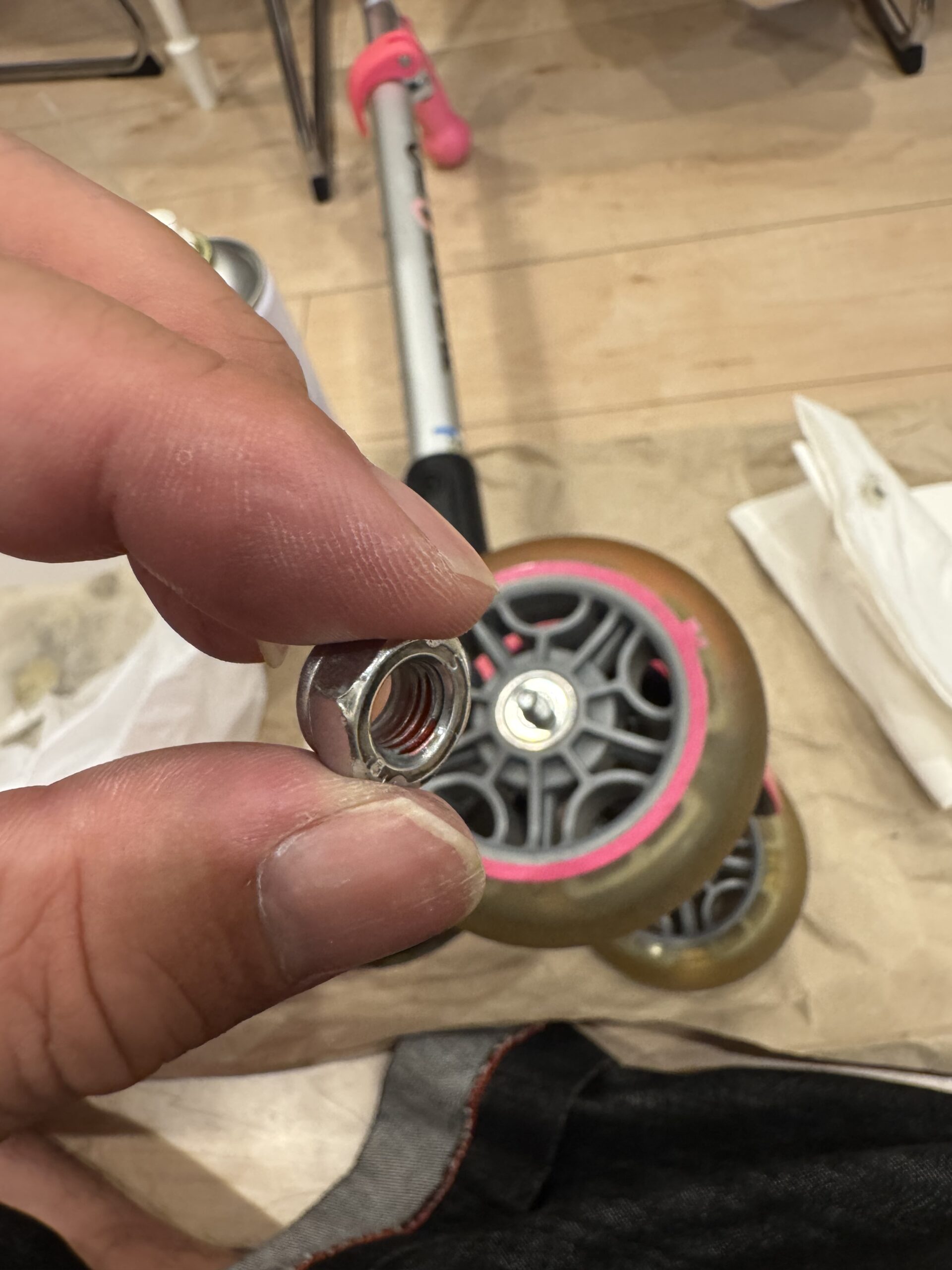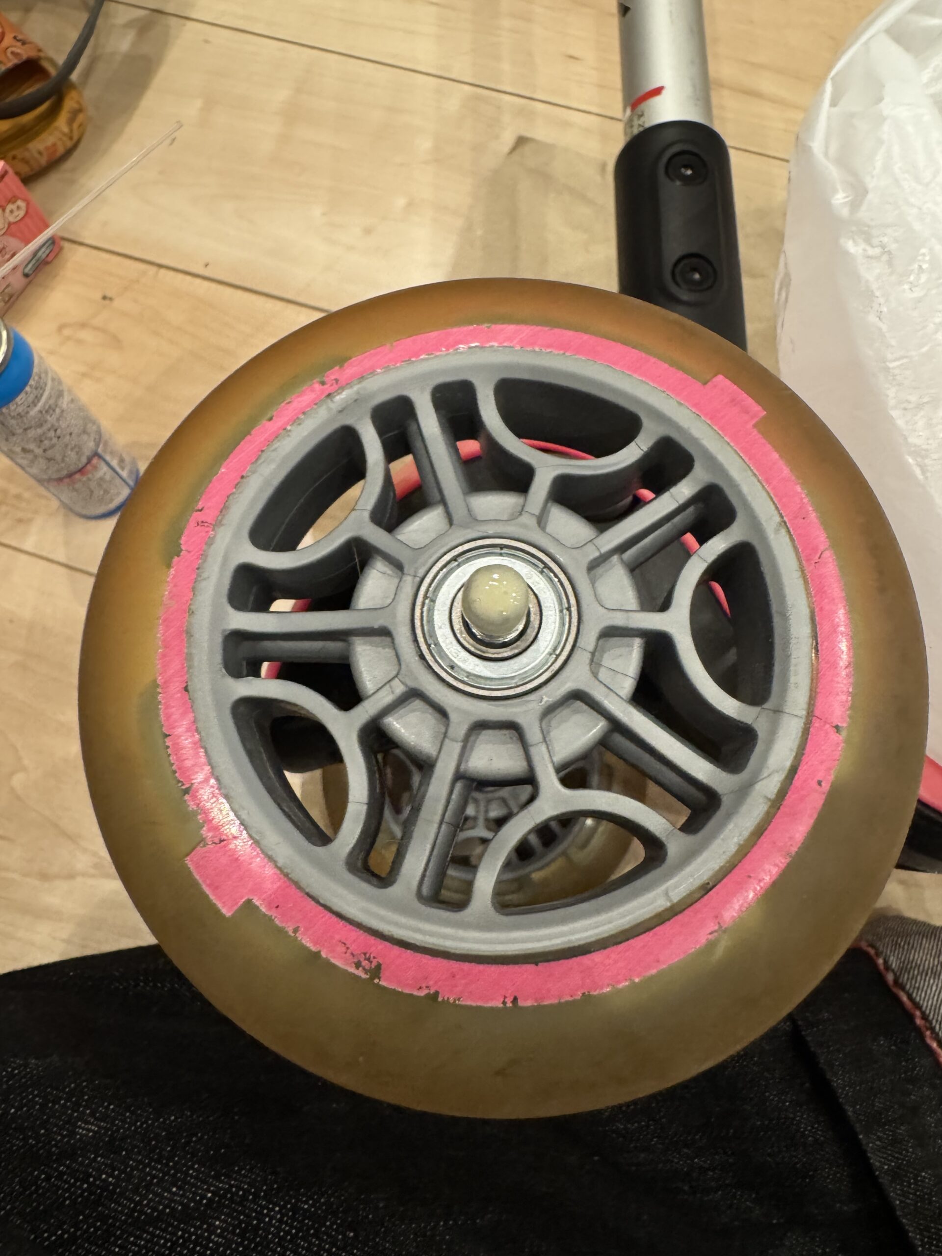 子供のキックボードのメンテナンスしていますか?先日ふと、車輪を見てみたらタイヤと軸の間が汚いこと汚いこと。砂利や髪が絡みついており、乗り心地が悪いのではないか?と思いました。